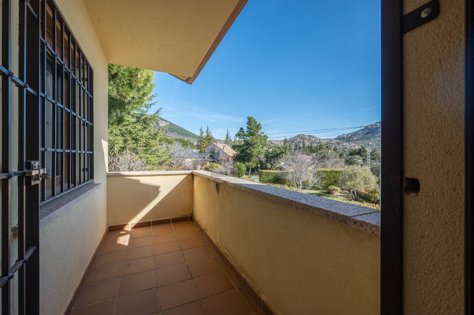 Desde el dormitorio principal se accede directamente a una TERRAZA PRIVADA, un espacio exterior íntimo y bien proporcionado. Esta ofrece vistas despejadas a la sierra