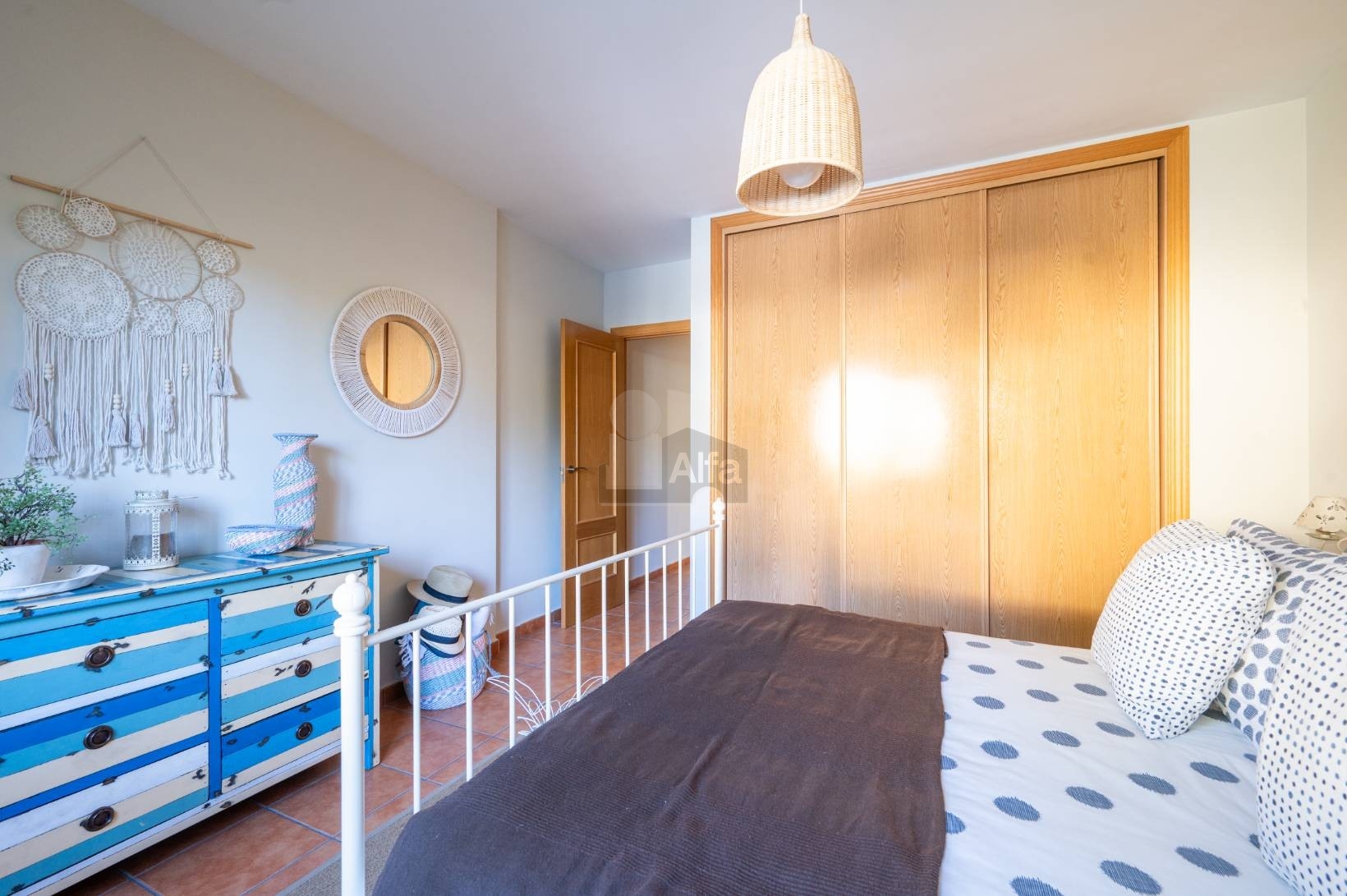 El DORMITORIO DOBLE de esta planta ofrece un ambiente sereno y muy acogedor, ide Es una estancia amplia, y con luz natural, donde predominan los tonos suaves y los materiales naturales, creando una atmósfera relajante y equilibrada.
