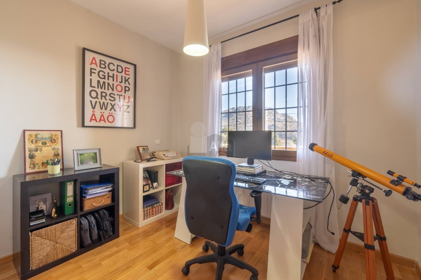 HABITACIÓN en planta superior, actualmente UTILIZADO COMO DESPACHO. La estancia cuenta con luz natural, gracias a su ventanal.