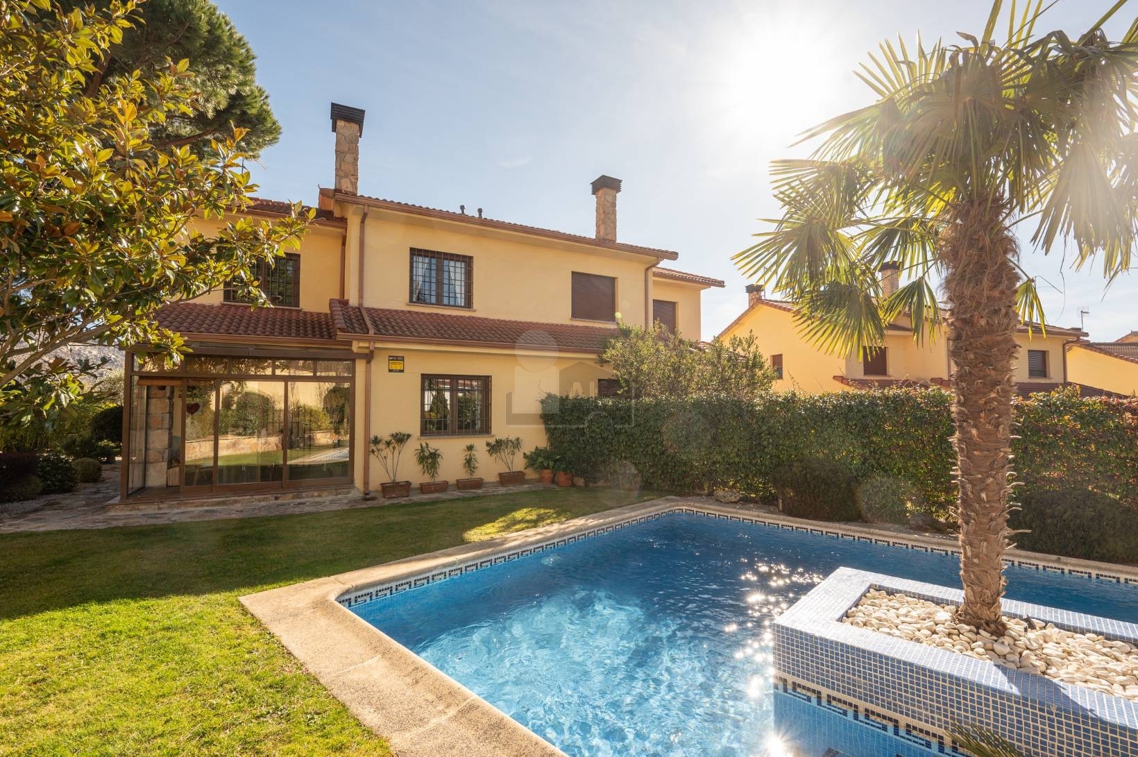 A continuación se abre un encantador JARDIN DE INVIERNO, un espacio íntimo y muy especial que actúa como transición natural entre el interior de la vivienda y el exterior. Cerrado con amplios ventanales produciendo una conexión directa con la zona exterior que da al jardín y la piscina.