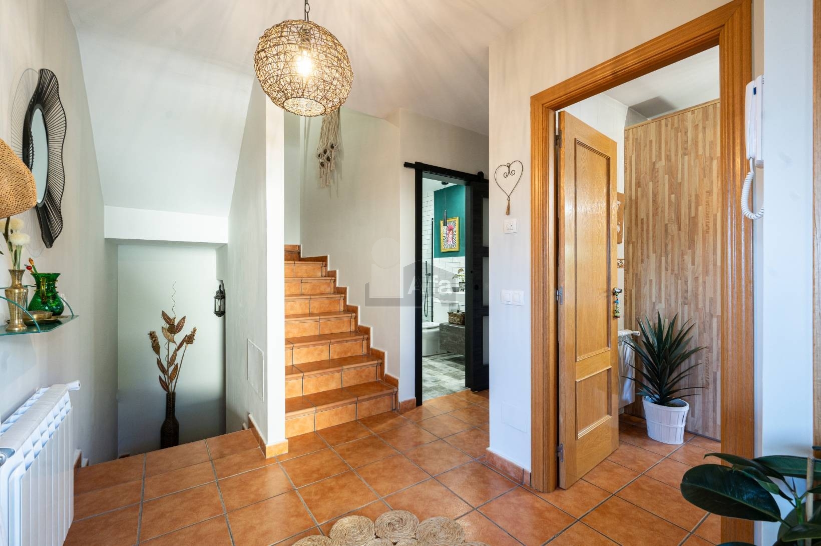 La vivienda nos recibe con un acogedor hall ,que actúa como eje natural de la PLANTA INFERIOR. Desde aquí se accede a las distintas estancias: el salón comedor, la cocina, un dormitorio y el baño, todo conectado y pensado para el día a día.