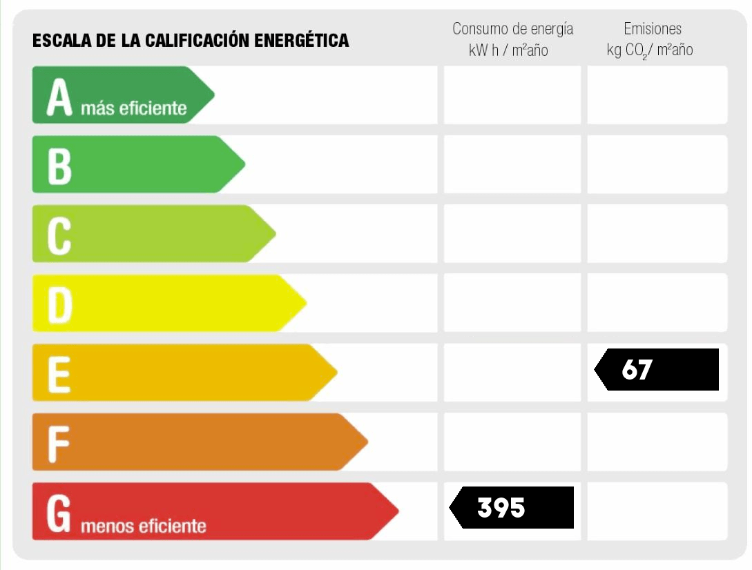 - Consumo de energía (kwh/m2 año): 395.