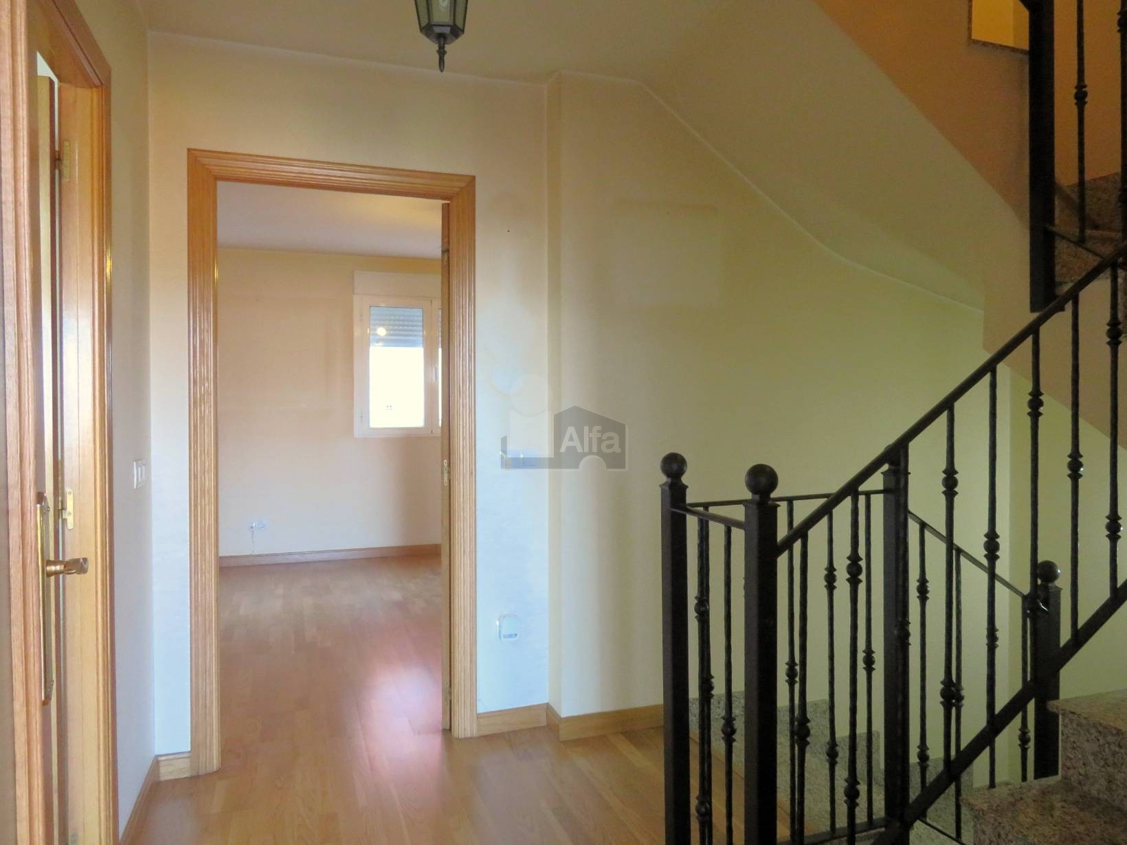 En la planta primera, se ubican tres dormitorios. Uno de ellos es especialmente amplio, cuenta con baño propio y está equipado con dos armarios empotrados, proporcionando un excelente espacio de almacenamiento. Los otros dos dormitorios, de tamaño medio, son lo suficientemente amplios como para albergar camas de matrimonio, y también en esta planta se encuentra otro baño completo que da servicio a estas habitaciones.